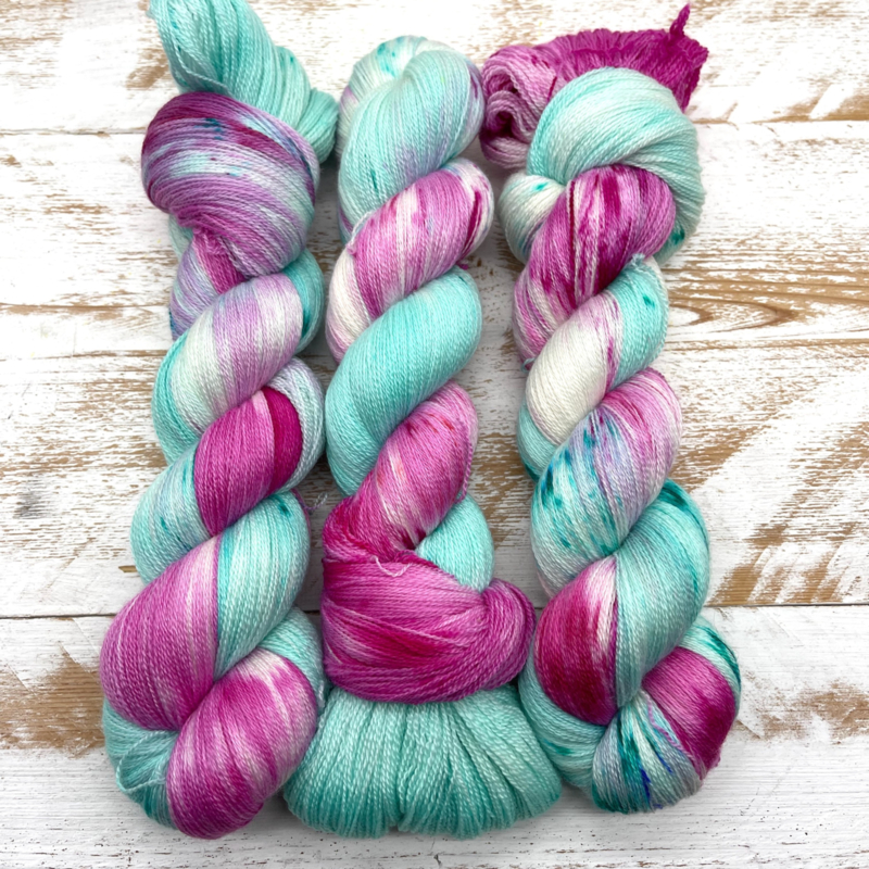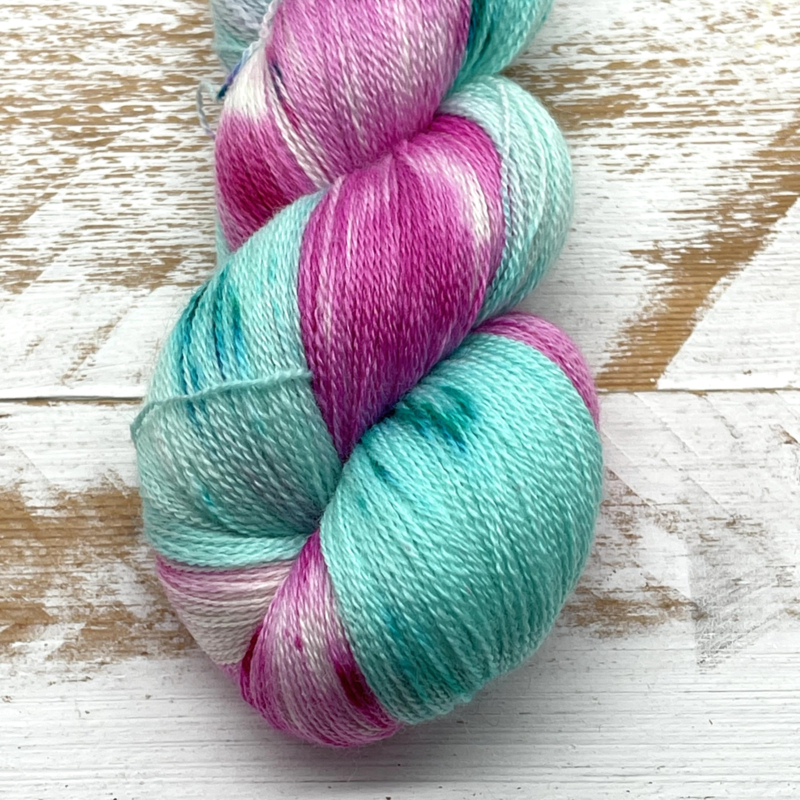 Artikelnummer: 0069-2026 OverzichtEen mooi, zacht 80% super wash Merino/ 20% zijde kant garen, 100 gram / 1200 meter.
