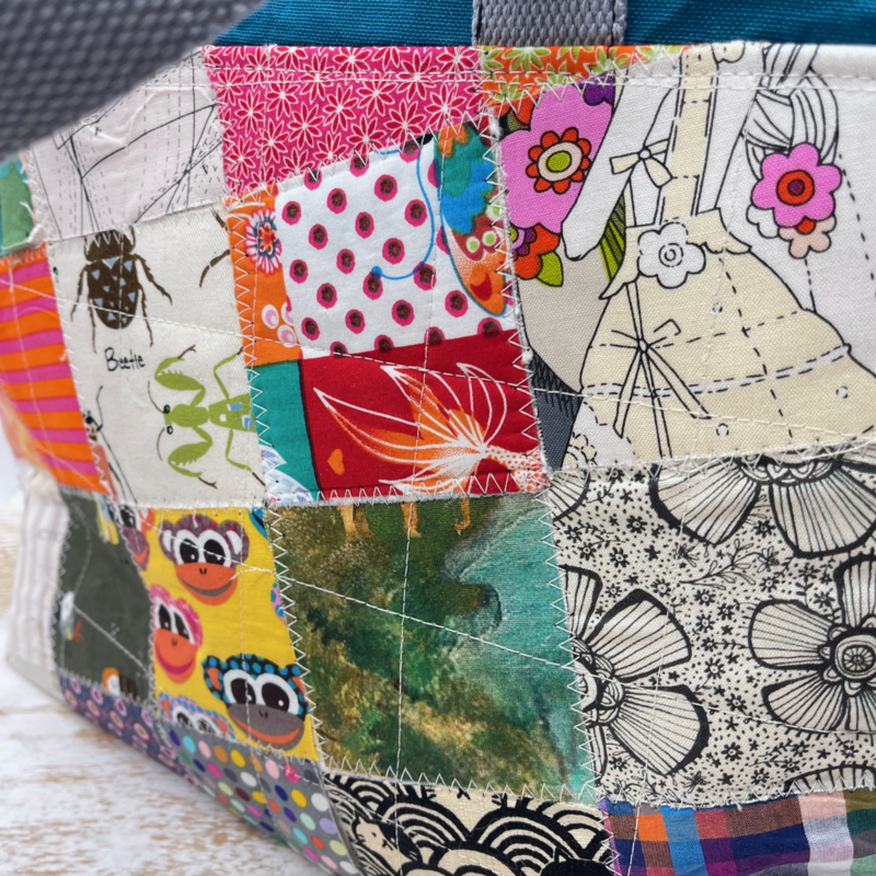 De tas is hand gemaakt, van verschillende stoffen die ik in mijn voorraad had.