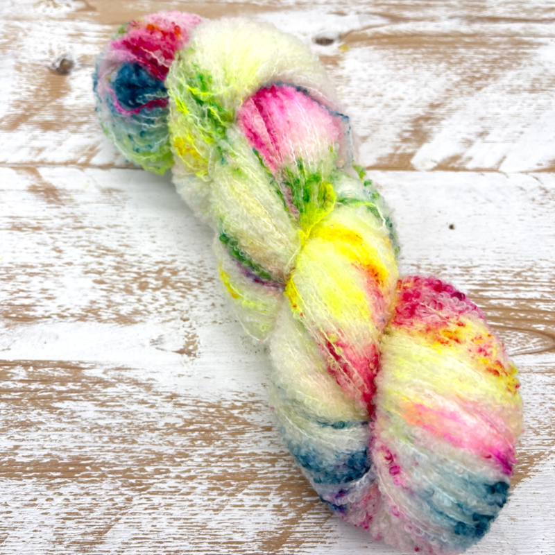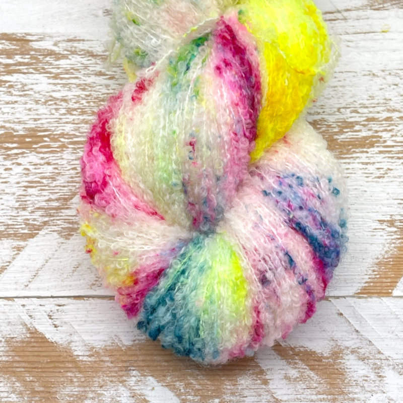 Curly Cat is een merino bouclé garen, super zachte merino omwikkeld met een nylon kern. 80% Sw Merino / 20 % Nylon (100 gram - 600 meter). De karakteristieke lussen van bouclé benutten de boterzachte textuur die merino zo populair maakt optimaal, en de nylon kern geeft het geheel extra stevigheid.