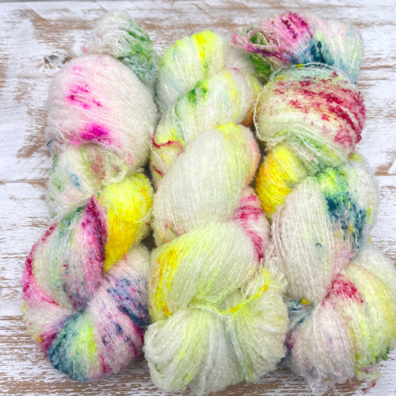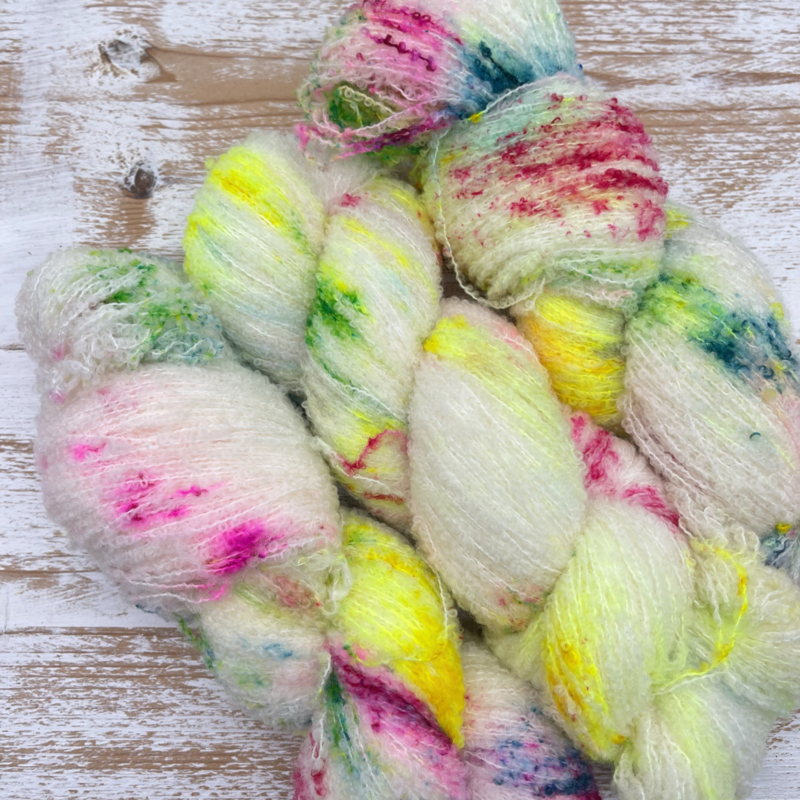 Combineer het met een dun garen (fingering/sock weight) of een DK-garen om truien, sjaals en cols te verzwaren en er extra warmte en textuur aan toe te voegen.perfect om een ​​prachtige textuur aan je projecten toe te voegen.