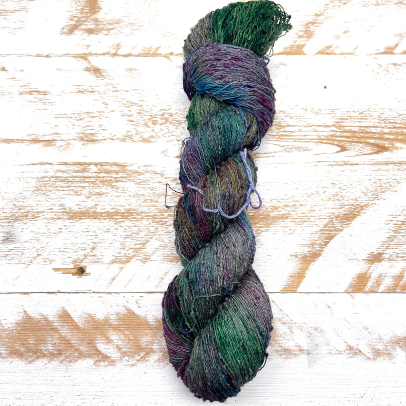 Of een mooi, zacht 42% Mulberry Zijde/ 26% Baby Alpaca/26% Superwash Merino/ 6% Silver Stellina Sparkle, 100 gram - 980 meter.