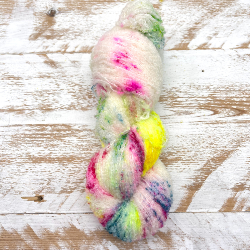 Combineer het met een dun garen (fingering/sock weight) of een DK-garen om truien, sjaals en cols te verzwaren en er extra warmte en textuur aan toe te voegen.perfect om een prachtige textuur aan je projecten toe te voegen.